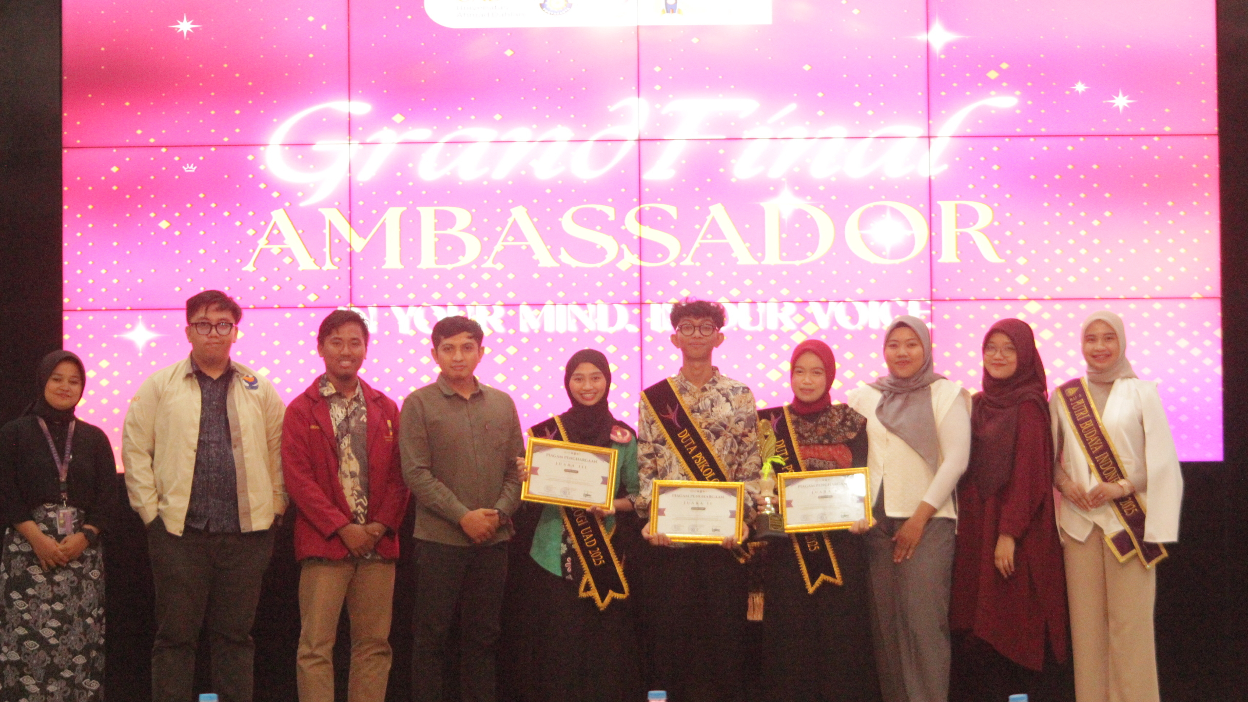 Yogyakarta – Fakultas Psikologi Universitas Ahmad Dahlan sukses menyelenggarakan Grand Final Duta Psikologi 2025 pada Minggu, 14 Desember 2025, Acara puncak yang berlangsung di Auditorium Kampus 1A UAD ini menjadi penutup dari rangkaian panjang seleksi duta fakultas yang mengedepankan kecakapan intelektual, kepribadian, serta kemampuan komunikasi mahasiswa Psikologi.